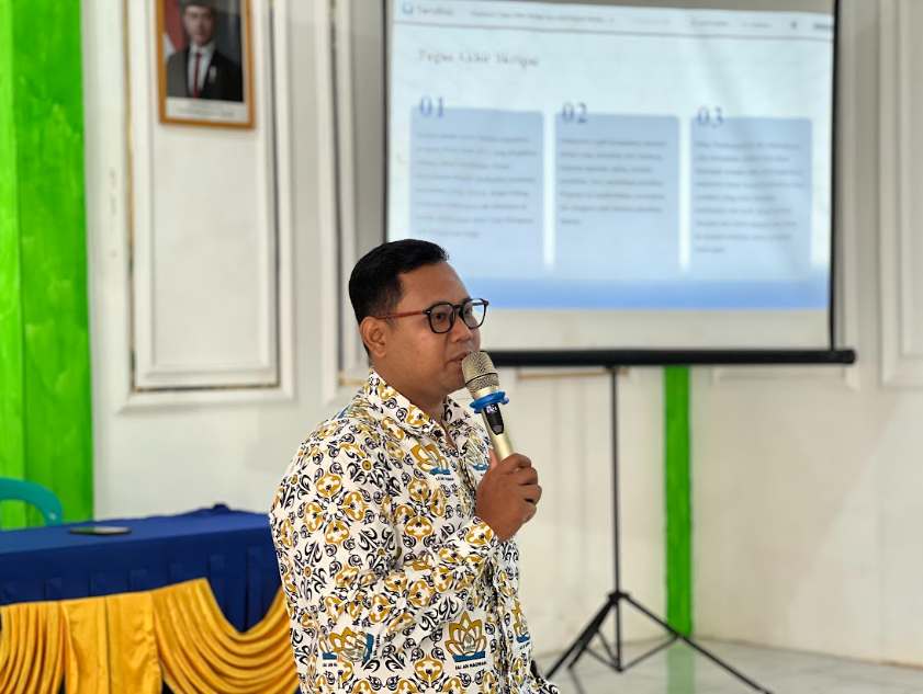 Kegiatan tersebut diisi oleh Agus Khairuddin, S.IP., M.Kom selaku Kepala Sub Unit Maintenance Website, SIAKAD, Publikasi dan Pangkalan Data Perguruan Tinggi. Dalam pemaparannya, ia menjelaskan secara rinci prosedur pengajuan tugas akhir berbasis SIAKAD, termasuk tahapan pendaftaran, unggah dokumen, verifikasi, hingga pemantauan status akademik mahasiswa secara daring. Penjelasan ini diharapkan dapat meminimalkan kendala teknis serta meningkatkan pemanfaatan sistem digital di lingkungan kampus.